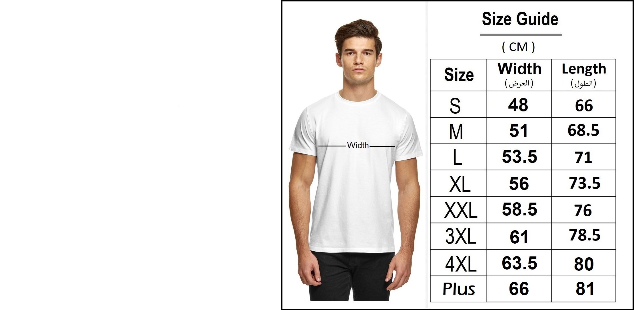 مقاسات التيشيرتات للكبار (العرض جهة واحدة) - هذه المقاسات لا تنطبق على التيشيرتات باللون الأزرق الكحلي